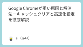 仕事効率化 Google Chromeが重い原因と解消法ーキャッシュクリアと高速化設定を徹底解説 「Google Chromeが重い、表示が崩れるとお悩みの方必見!キャッシュクリアのやり方やスーパーリロードのショートカット、最新の高速化設定まで図解でわかりやすく解説。この記事を読めばChromeの不具合を5分で解決できます。」 仕事効率化