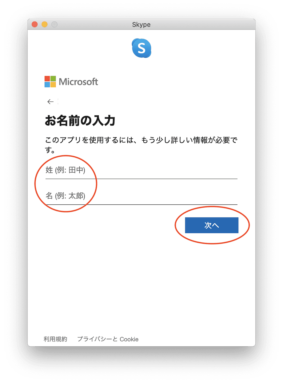 「Skype.app」をダブルクリックすると、以下の画面になります。